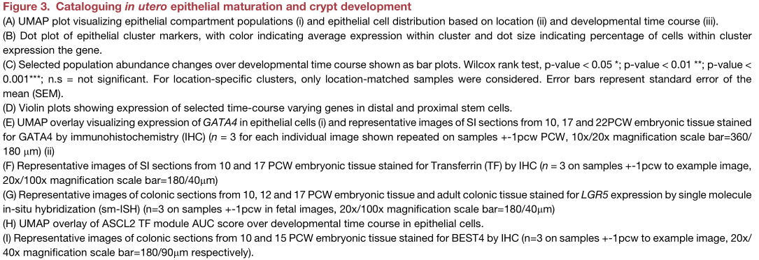最后,研究人員證實(shí)S2標(biāo)記F3在隱窩形成之前就已經(jīng)存在,并且形成的小丘隨著絨毛的形成而逐漸增加(Figure 5 F)。因此,在人腸道中,S2型纖維母細(xì)胞不僅是維持上皮隱窩位所必需的,而且可能在其形成中發(fā)揮積極作用。
