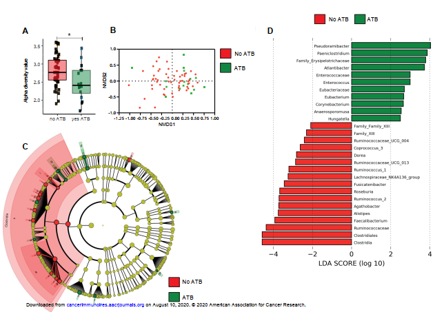 ?圖1所有ICI治療的NSCLC患者腸道微生物組成按照抗生素使用分層