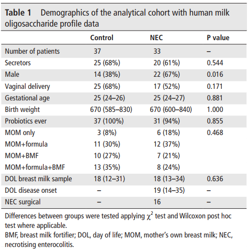 目的:壞死性小腸結(jié)腸炎(NEC)是一種影響早產(chǎn)兒的嚴(yán)重腸道疾病。人們對其潛在機(jī)制知之甚少:母親自己的母乳(MOM)具有保護(hù)性,可能與母乳寡糖(HMO)和嬰兒腸道微生物相互作用。作者研究了HMO和嬰兒腸道微生物組發(fā)育之間的相互作用及其與NEC之間的關(guān)系。設(shè)計(jì):作者對33例NEC患兒和37例對照母乳中的母乳寡糖進(jìn)行了分析。對48名嬰兒(含14例NEC患兒)糞便進(jìn)行了縱向宏基因組測序(n=644)。