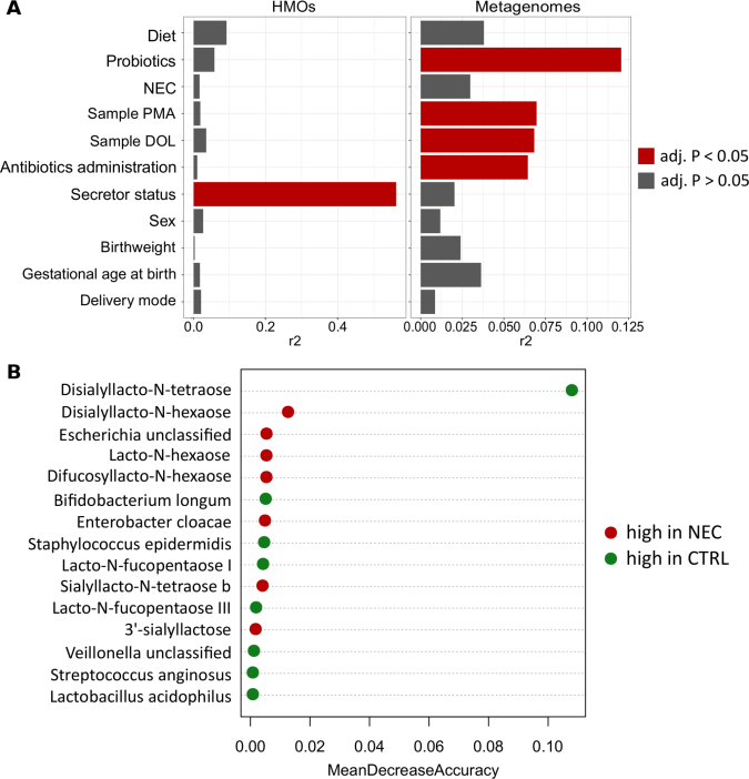 圖5使用Adonis和random forest建立HMO和嬰兒糞便宏基因組模型