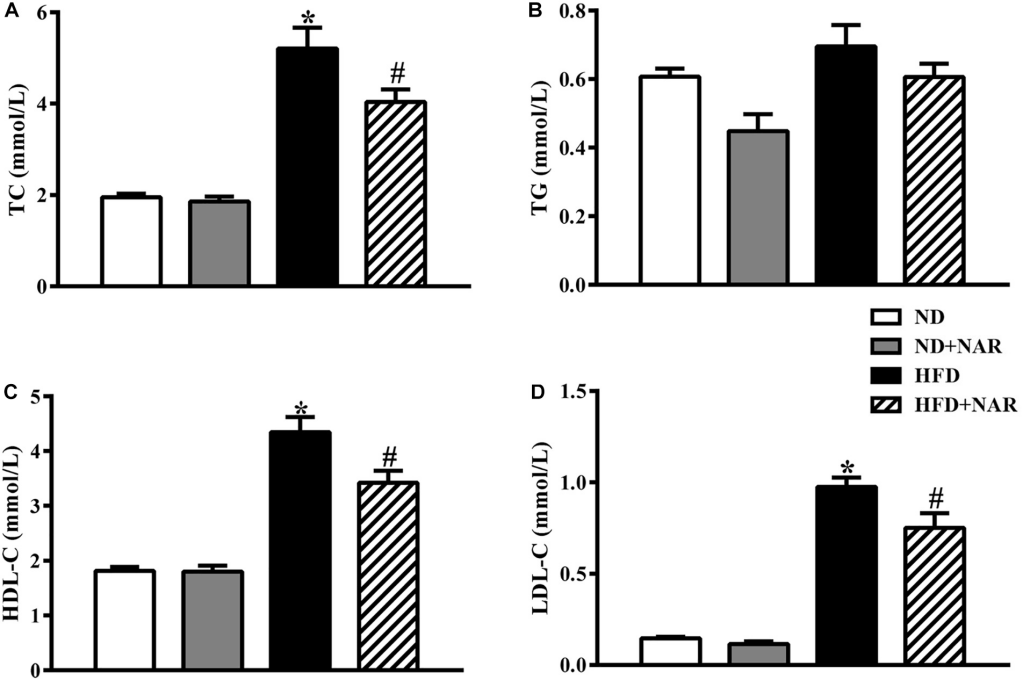 圖2 NAR對(duì)HFD小鼠血脂水平的影響