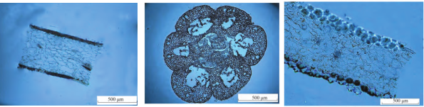 動物組織常用HE(蘇木精-伊紅染色法 ( hematoxylin-eosin staining ))染色,可以精準識別組織形態(tài)和病理學(xué)鑒定。然而植物的組織存在的纖維素和一些木質(zhì)素不適合HE染色方法,采取的是甲苯胺藍染色法,其基本原理是植物組織木質(zhì)化細胞壁呈藍綠色,其他組織成分呈紫藍色,可以精準輔助判斷植物組織形態(tài)學(xué)和確定捕獲區(qū)域。