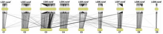 綠豆是豇豆屬中的主要栽培作物,也是我國(guó)重要的食用豆類。本研究對(duì)RIL群體及其親本進(jìn)行全基因組重測(cè)序,每個(gè)RIL系測(cè)序深度為4.54×,親本Dahuaye和Jilyu 9-1測(cè)序深度分別為20×和24×;利用劃bin策略進(jìn)行圖譜構(gòu)建,得到1946個(gè)bins,使用百邁客作圖軟件HighMap進(jìn)行圖譜構(gòu)建,總圖距為1060.17cM,平均圖距僅為0.54cM;與參考基因組共線性分析顯示,二者之間具有較高的共線性?;谠搱D譜,結(jié)合連續(xù)兩年的表型數(shù)據(jù),對(duì)缺刻葉和皺縮葉兩個(gè)葉形性狀進(jìn)行QTL分析;其中,缺刻葉性狀共檢測(cè)到8個(gè)QTL;皺縮葉性狀在兩個(gè)環(huán)境中均檢測(cè)到主效QTL。進(jìn)一步,對(duì)定位區(qū)間的候選基因及候選基因在兩親本間的SNP進(jìn)行了分析。