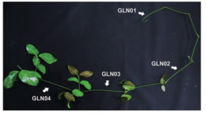 材料:GLN01(莖尖,直徑=0.5-2mm)、GLN02(2-3 mm)、GLN03(3-4 mm)和GLN04(4-5 mm)。每個(gè)發(fā)育階段制備了三個(gè)重復(fù)樣品(兩個(gè)來(lái)自雌性個(gè)體,一個(gè)來(lái)自雄性個(gè)體)