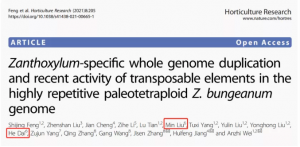 主要內(nèi)容:本研究基于PacBio測序平臺,組裝了4.23 Gb花椒(鳳椒)基因組,并基于Hi-C技術(shù)將98%序列掛載至68條染色體上。比較基因組分析研究了揭示花椒在2,600萬年前經(jīng)歷了一次獨(dú)立的全基因組復(fù)制事件(η-WGD),以及在640萬年前發(fā)生了轉(zhuǎn)座子爆發(fā)事件,這系列事件造成了花椒大量基因組擴(kuò)增。作者進(jìn)一步結(jié)合轉(zhuǎn)錄組和代謝組分析表明,顯著的物種特異性基因家族擴(kuò)張和基因表達(dá)的變化影響了花椒麻味物質(zhì)、單萜類物質(zhì)和花青素的生物合成,并繪制了花椒麻味物質(zhì)合成的代謝通路圖。該參考基因組為研究近期轉(zhuǎn)座子擴(kuò)增和全基因組復(fù)制事件對基因得失和基因組重建的影響提供了有價(jià)值的模型,并為加速花椒遺傳改良提供了理論基礎(chǔ)。