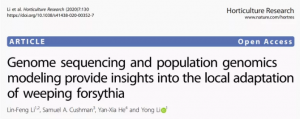 主要內(nèi)容:該研究以藥用作物連翹為研究對象,通過Nanopore平臺測序數(shù)據(jù)組裝了737.47 Mb的高質(zhì)量連翹基因組。并對15個(gè)連翹自然種群進(jìn)行全基因組比較分析,找到了與本地適應(yīng)相關(guān)的太陽輻射、溫度和降雨等變量相關(guān)候選基因。該研究為連翹從野生種群篩選優(yōu)良種質(zhì)資源提供了遺傳資源和理論參考。