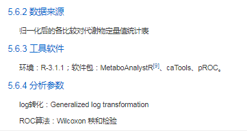 ROC曲線 (receiver operating characteristic curve) 是一種常用來篩選評估生物標記物的分析方法[9]。AUC (Area under the curve) 是衡量ROC曲線非常有用的度量。AUC始終在0.5(兩個類在統(tǒng)計上相同)和1.0(有一個閾值可以實現(xiàn)類之間的完美分離)之間,越接近1,物質的在對照組和實驗組的分離就越明顯(即為潛在的生物標記物)。一般來說,組內生物學重復>15時,ROC曲線才有足夠的點繪制折線,才會體現(xiàn)出較大意義。對篩選出的各組差異代謝物單獨進行ROC分析。
