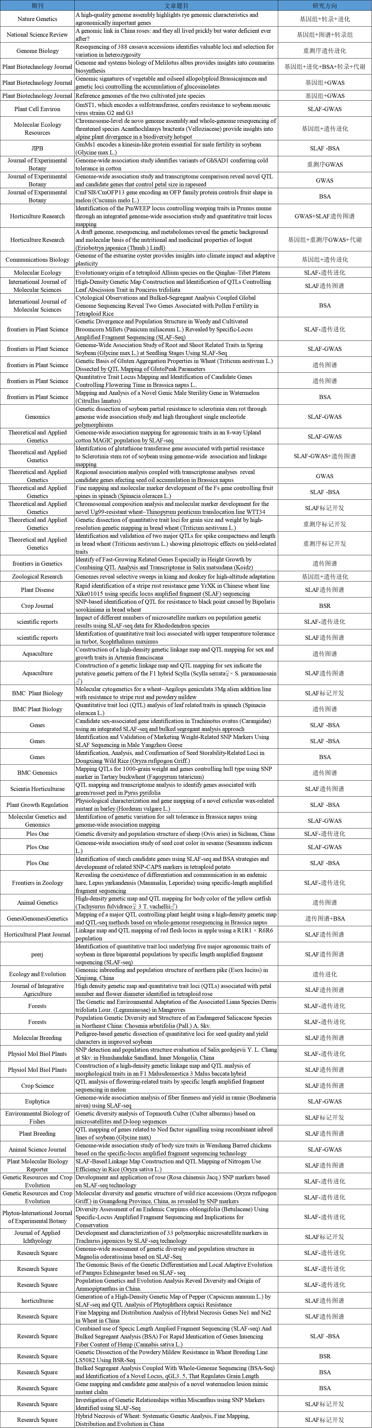 2022年的鐘聲即將敲響,2021年正要轉(zhuǎn)身離去,過去的一年里百邁客群體再創(chuàng)佳績,協(xié)助客戶先后在《Genome Biology》、《Plant Biotechnology Journal》、《Molecular Ecology Resources》、《Horticulture Research》、《Plant, Cell & Environment》、《JIPB》等期刊發(fā)表SCI文章80+,據(jù)不完全統(tǒng)計(jì),累計(jì)影響因子400+,服務(wù)類型涉及標(biāo)記開發(fā)、遺傳圖譜、BSA、GWAS、遺傳進(jìn)化等。