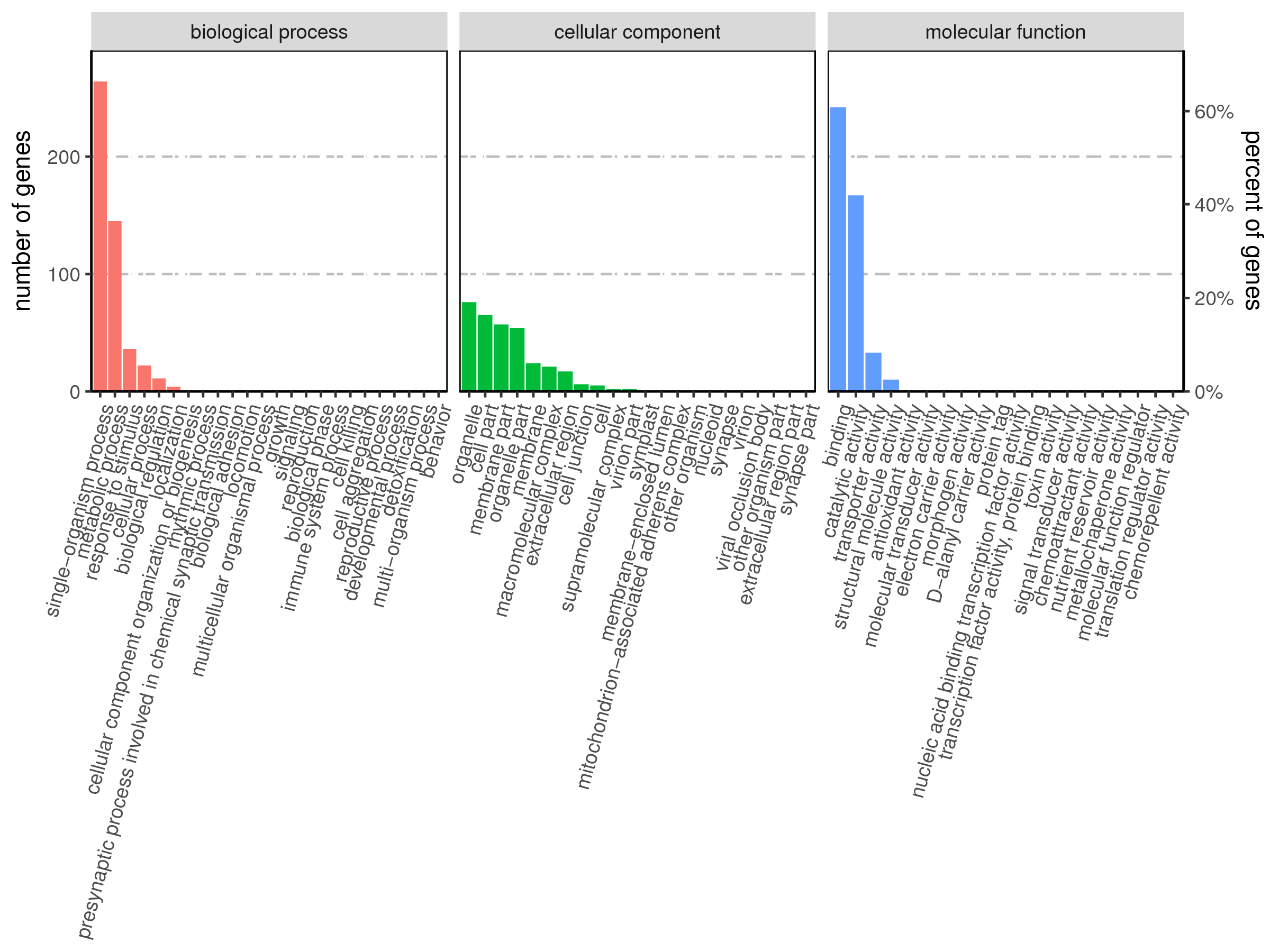 對(duì)轉(zhuǎn)錄水平和蛋白水平都檢測(cè)到的蛋白進(jìn)行GO功能注釋分析,將每個(gè)差異分組的差異基因和差異蛋白劃分為4種不同的變化趨勢(shì)(蛋白和mRNA表達(dá)趨勢(shì)相同、蛋白和mRNA表達(dá)趨勢(shì)相反、蛋白無(wú)變化,mRNA差異表達(dá)、mRNA無(wú)變化,蛋白差異表達(dá)),并對(duì)每種變化趨勢(shì)中的基因和蛋白分別做GO功能注釋,為挑選出調(diào)控表性變化的關(guān)鍵基因和蛋白提供了候選。