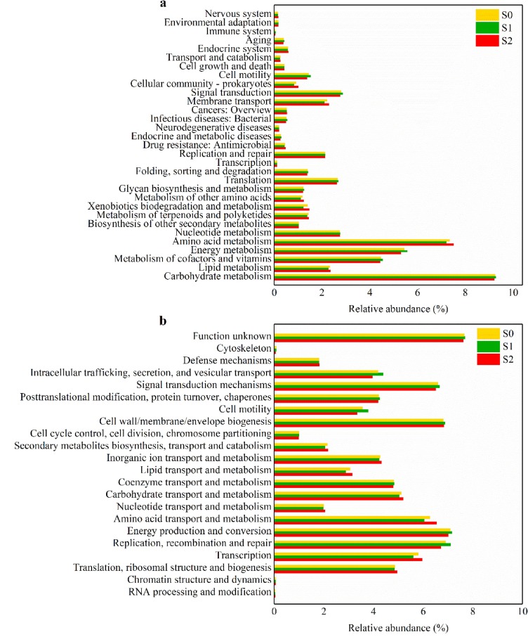圖5.基于(a) KEGG和(b) COG 數(shù)據(jù)庫的PICRUSt分析