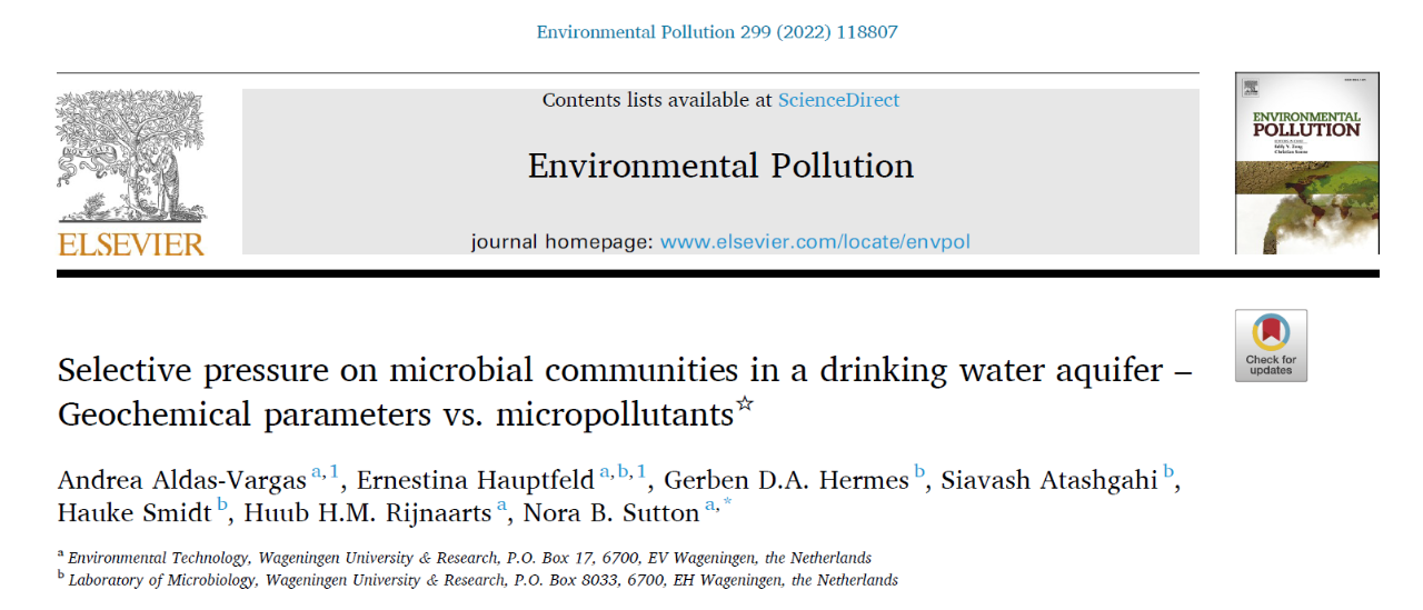 2.?Aldas-Vargas?A,?Hauptfeld?E,?Hermes?G?D?A,?et?al.?Selective?pressure?on?microbial?communities?in?a?drinking?water?aquifer-Geochemical?parameters?vs.?micropollutants[J].?Environmental?Pollution,?2022:?118807.