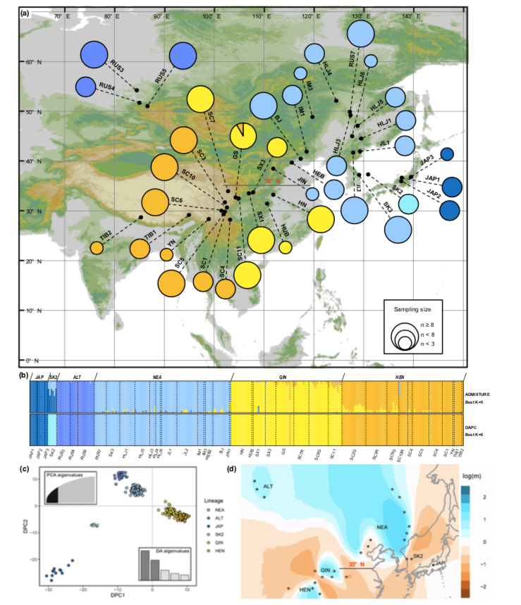 在今年3月份發(fā)表在Molecular Ecology(IF = 6.185)上的題為“Ecological adaptation shaped the genetic structure of homoploid ferns against strong dispersal capacity”的研究中,中國科學(xué)院植物植物研究所張憲春研究組利用SLAF-seq對(duì)中華蹄蓋蕨復(fù)合群Athyrium sinense complex進(jìn)行簡化基因組測序,獲取全基因組范圍內(nèi)有代表性的SNP變異位點(diǎn),對(duì)其群體遺傳結(jié)構(gòu)進(jìn)行分析,揭示了蕨類植物孢子強(qiáng)擴(kuò)散能力下生態(tài)適應(yīng)塑造的遺傳分化格局。