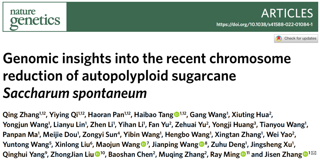 福建農(nóng)林大學(xué)海峽聯(lián)合研究院基因組中心張積森課題組博士生張清(目前中國農(nóng)科院深圳農(nóng)業(yè)基因組研究所工作)、齊浥穎、碩士生潘浩然和基因組中心唐海寶教授為論文共同第一作者,基因組中心張積森教授為通訊作者。張積森教授團(tuán)隊(duì)長期從事以甘蔗基因組學(xué)與分子育種研究,該成果是基因組中心團(tuán)隊(duì)在甘蔗領(lǐng)域發(fā)表的第2篇Nature Genetics論文,作為近60年以來發(fā)表研究刊物高的甘蔗論文,該研究將進(jìn)一步奠定我國在甘蔗基礎(chǔ)研究領(lǐng)域的學(xué)術(shù)地位。
