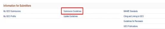 登錄成功后,回到GEO的主頁,點(diǎn)擊 ?Submission Guidelines