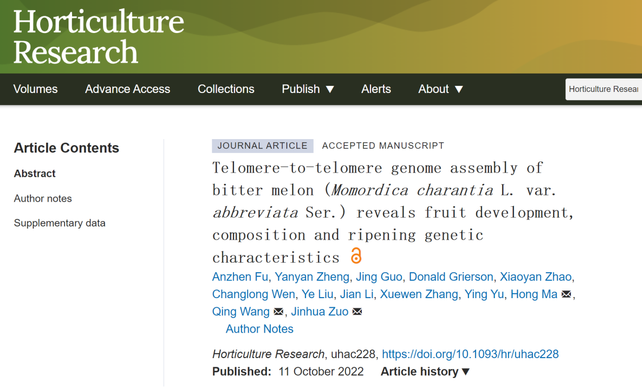 近日,北京市農(nóng)林科學(xué)院農(nóng)產(chǎn)品加工與食品營(yíng)養(yǎng)研究所左進(jìn)華研究員團(tuán)隊(duì)聯(lián)合美國(guó)賓夕法尼亞州立大學(xué)馬紅教授團(tuán)隊(duì)完成超高質(zhì)量苦瓜變種‘金鈴子’T2T基因組。主要研究成果“Telomere-to-telomere genome assembly of bitter melon (Momordica charantia L. var.?abbreviata Ser.) reveals fruit development, composition and ripening genetic characteristics”在線(xiàn)發(fā)表于園藝TOP期刊Horticulture Research。該研究揭示了‘金鈴子’基因組組成和進(jìn)化關(guān)系以及果實(shí)生長(zhǎng)發(fā)育的分子調(diào)控機(jī)制,進(jìn)一步細(xì)化了苦瓜亞種材料差異表型的基因組變異特征,以及果實(shí)品質(zhì)的關(guān)鍵信息。本研究是該團(tuán)隊(duì)在葫蘆科領(lǐng)域的完成的第3個(gè)高質(zhì)量基因組,為葫蘆科系統(tǒng)發(fā)育與應(yīng)用研究起到了重要的推動(dòng)作用。百邁客張學(xué)雯、余瑩作為共同作者,參與了本項(xiàng)研究。