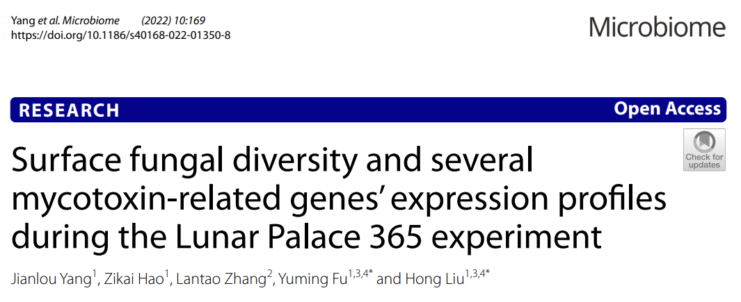 研究內(nèi)容:中國月宮一號(LP1)是集高效植物栽培、動物蛋白生產(chǎn)、尿氮回收、固體廢物生物轉(zhuǎn)化為一體的地面生物再生生命支持系統(tǒng)(BLSS)試驗臺。迄今為止,還沒有基于分子方法的詳細調(diào)查BLSS棲息地中的真菌群落和霉菌毒素潛力。為了確保實際太空任務的安全BLSS設計,通過ITS1擴增子測序和qPCR技術分析了月宮365項目期間LP1表面真菌組和霉菌毒素的潛力。與其他封閉的生境相比,LP1系統(tǒng)在真菌群落多樣性方面表現(xiàn)出明顯的差異,真菌的alpha多樣性更高,群落結構也不同。由于不同居住群體的存在,LP1生境的表面真菌群落存在著明顯的差異。然而,在有不同居住者的植物艙中,真菌群落沒有明顯的差異。溯源分析顯示,LP1中的大部分表面真菌都來自于植物。不管居住者或地點的差異,霉菌毒素基因拷貝數(shù)沒有明顯差異。研究顯示,植物是表面真菌微生物組的關鍵來源;然而,居住者的更替會引起B(yǎng)LSS中表面真菌群落的重大擾動。種植植物減少了真菌的波動,保持了表面真菌微生物群的健康平衡和霉菌毒素的潛力。