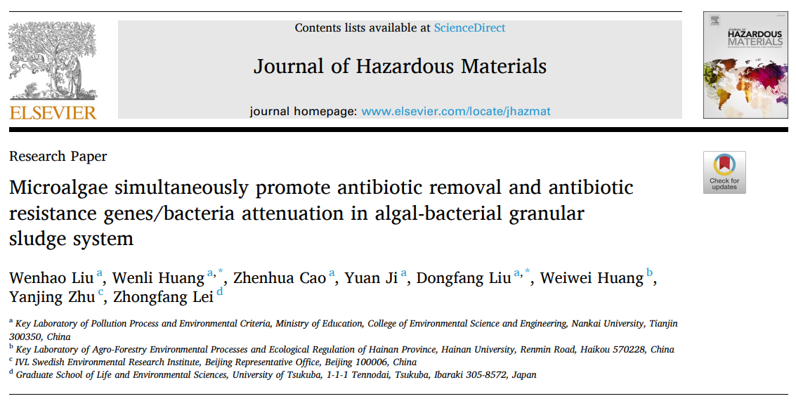 研究內(nèi)容:本研究調(diào)查了微藻生長對抗生素去除的影響以及藻類-細菌顆粒污泥(ABGS)系統(tǒng)中抗生素耐藥基因(ARGs)/ ARGs宿主細菌的衰減。在四環(huán)素(TC)和磺胺嘧啶(SDZ)混合物(2-4 mg/L)的存在下,微藻可以在細菌顆粒污泥(BGS)上生長,形成ABGS,葉綠素-a含量達到了7.68-8.13 mg/g-VSS。ABGS對TC和SDZ的去除率高達79.0%和94.0%,比BGS的去除率高4.3-5.0%。宏基因組分析表明,BGS中與TC/SDZ相關的ARG和移動元件(MGEs)的相對豐度比ABGS中的高56.1%和22.1%。從顆粒中共檢測到26個ARG,它們被鑒定為與46個宿主細菌有關。26個ARG中的13個和46個宿主中的13個分別是和宿主共享的ARG。BGS中宿主細菌的總相對豐度比ABGS中的高30.8%。Scenedesmus和Chlorella是主要的微藻,可能會減少ARG宿主的多樣性。總的來說,ABGS是一種有前途的生物技術,用于含抗生素的廢水處理。