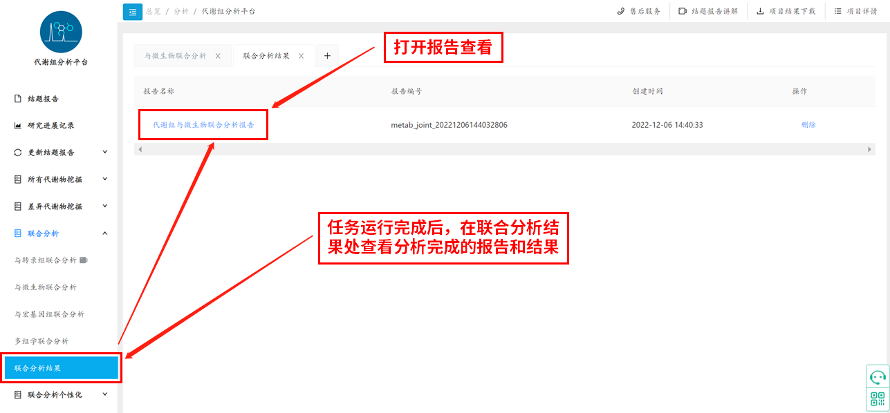 提交分析:等待分析完成獲得分析報(bào)告結(jié)果,一般任務(wù)運(yùn)行周期1-2h。任務(wù)運(yùn)行完成后,在聯(lián)合分析結(jié)果處查看分析完成的報(bào)告和結(jié)果,示例圖如下: