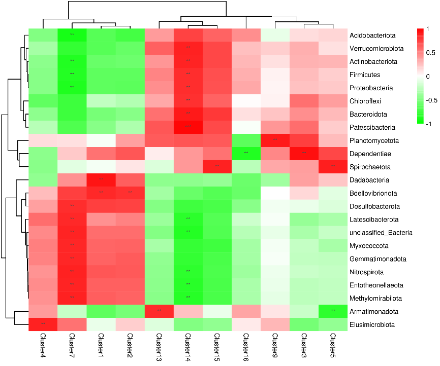 代謝物簇-微生物相關(guān)性熱圖