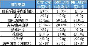 3、三代DNA類產(chǎn)品建議組織送樣量