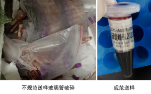 4)將樣品管置于管架上固定好后埋在干冰箱的中間部位,大體積干冰運(yùn)輸。