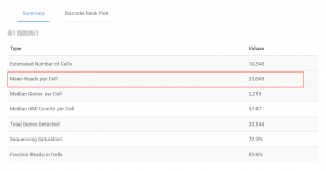 (2)細(xì)胞相關(guān)統(tǒng)計(jì):新增細(xì)胞平均reads數(shù)(Mean?Reads per Cell)