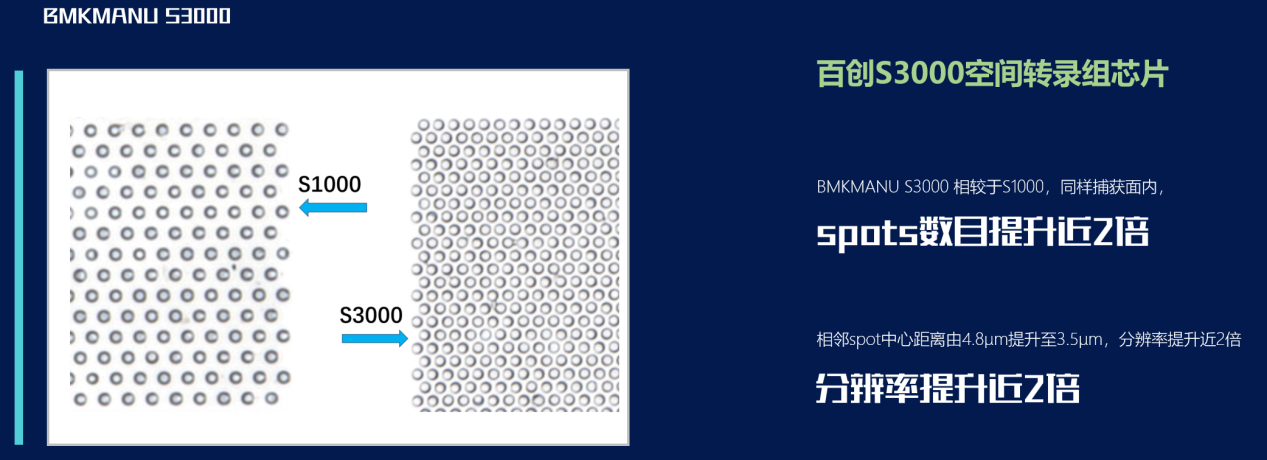相較于現(xiàn)在廣受市場認可與好評的百創(chuàng)S1000轉(zhuǎn)錄組芯片,捕獲位點數(shù)提升近2倍,分辨率同樣提升近2倍
