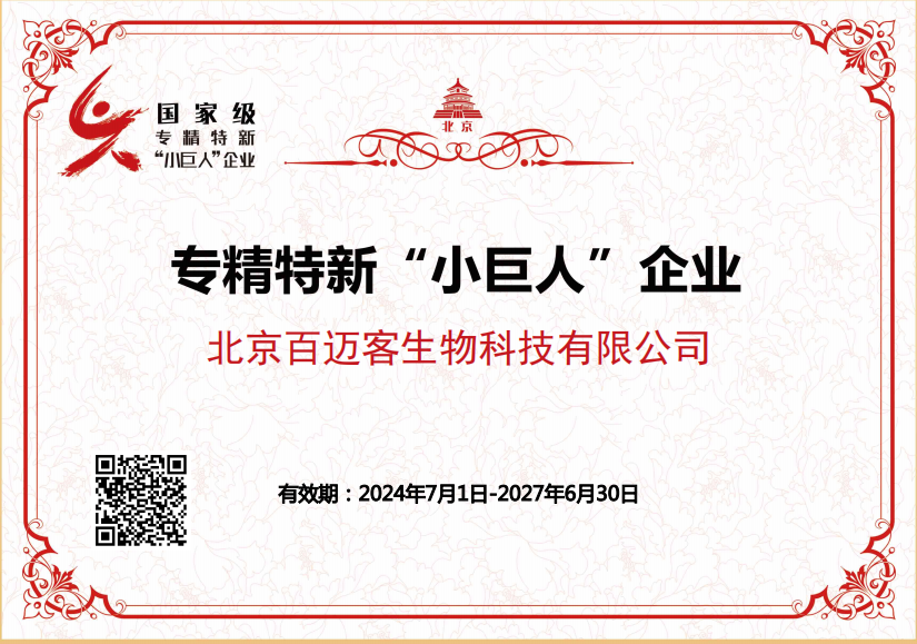 近日,由工業(yè)和信息化部組織的第六批國家級(jí)專精特新“小巨人”企業(yè)認(rèn)定工作中,北京百邁客生物科技有限公司榮獲國家級(jí)專精特新“小巨人”企業(yè)稱號(hào)。這一殊榮不僅是對(duì)百邁客生物在基因測序領(lǐng)域領(lǐng)先地位的認(rèn)可,更是對(duì)公司持續(xù)創(chuàng)新、深耕行業(yè)多年的肯定。