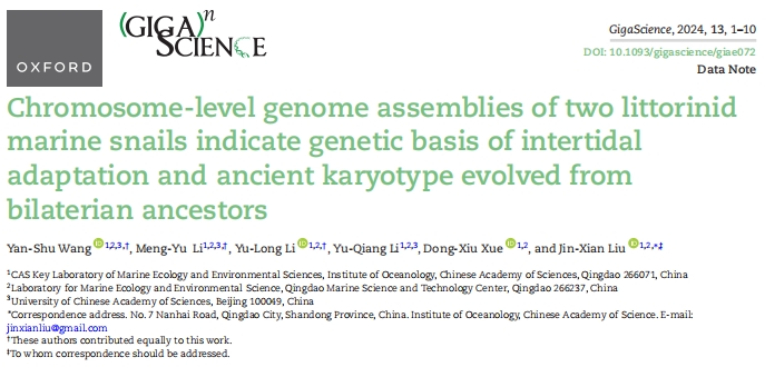 文章標(biāo)題:Chromosome-level genome assemblies of two littorinid marine snails indicate genetic basis of intertidal adaptation and ancient karyotype evolved from bilaterian ancestors