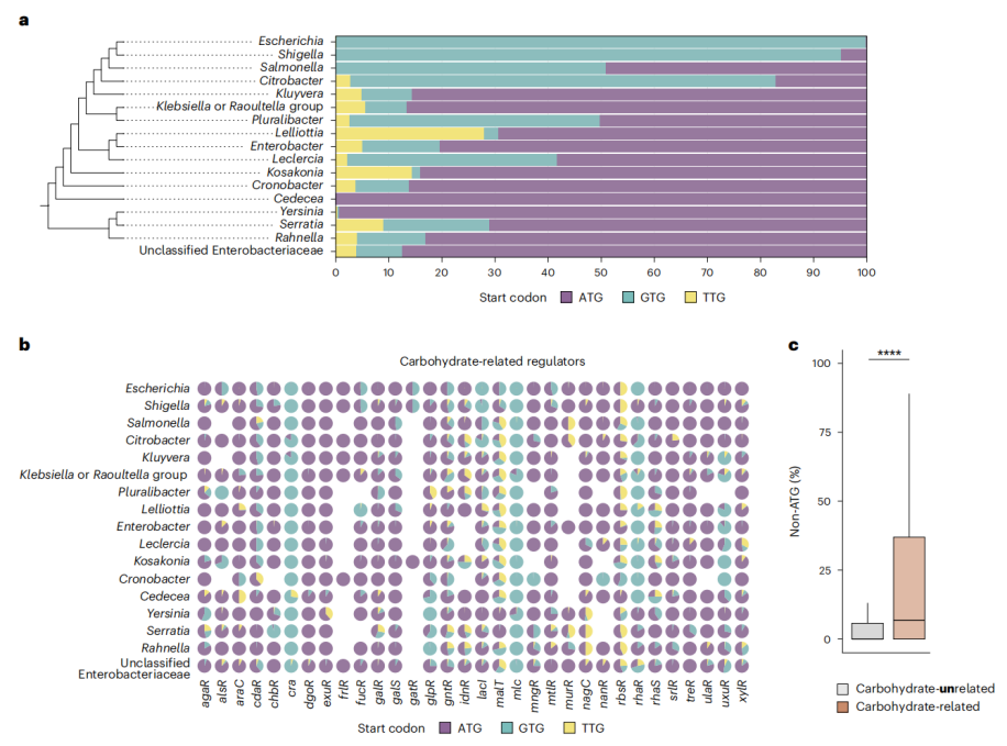 研究人員分析了腸桿菌科其他屬的碳水化合物代謝調節(jié)基因,發(fā)現(xiàn)這些基因中也存在非標準起始密碼子。例如,cra 和 mlc 基因幾乎全部包含 GTG 起始密碼子,這表明非標準起始密碼子可能在代謝競爭中發(fā)揮更廣泛的作用。這表明非標準起始密碼子可能通過調節(jié)其他代謝途徑的活性,影響細菌的生存競爭力。