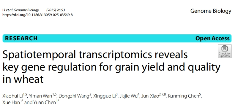 2025年4月11日,北京大學(xué)現(xiàn)代農(nóng)業(yè)研究院研究團(tuán)隊在Genome Biology發(fā)表研究論文。題為”Spatiotemporal transcriptomics reveals key gene regulation for grain yield and quality in wheat”。