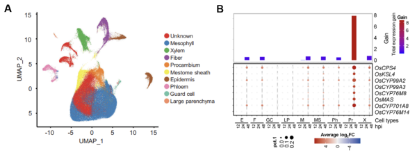 單細胞組學和時空組學是近年來生命科學領域的重要技術突破,它們在細胞異質性解析、動態(tài)過程研究和細胞間相互作用分析方面具有重要優(yōu)勢,為生命科學研究帶來了全新的視角和深度。水稻稻瘟病是世界上發(fā)生嚴重的真菌病害之一,水稻在面臨稻瘟菌侵染時會激活動態(tài)免疫,因此挖掘水稻特異免疫基因對于抗稻瘟病菌侵染至關重要。
