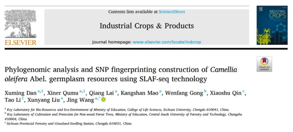 2025年4月2日,Industrial Crops & Products在線發(fā)表了由四川省林草局、四川大學(xué)生命科學(xué)學(xué)院王婧教授課題組聯(lián)合中南林業(yè)科技大學(xué)等多家單位合作完成的研究論文,題為” Phylogenomic analysis and SNP fingerprinting construction of Camellia oleifera Abel. germplasm resources using SLAF-seq technology”。該研究利用SLAF-seq技術(shù),對四川省主栽的來自我國南方25個主要油茶品種開展了系統(tǒng)發(fā)育和群體基因組學(xué)研究,并篩選關(guān)鍵SNP標(biāo)記構(gòu)建了DNA指紋圖譜。該指紋圖譜的構(gòu)建有望為我國南方尤其是四川地區(qū)油茶種質(zhì)資源保護、開發(fā)利用及品種選育提供關(guān)鍵科學(xué)依據(jù)。