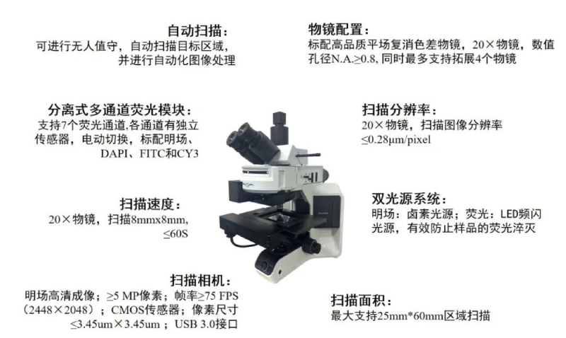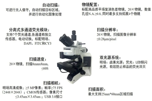 50S內(nèi)可完成8mm*8mm 20X掃描,支持掃描25mm*60mm,原片明場及原片熒光成像