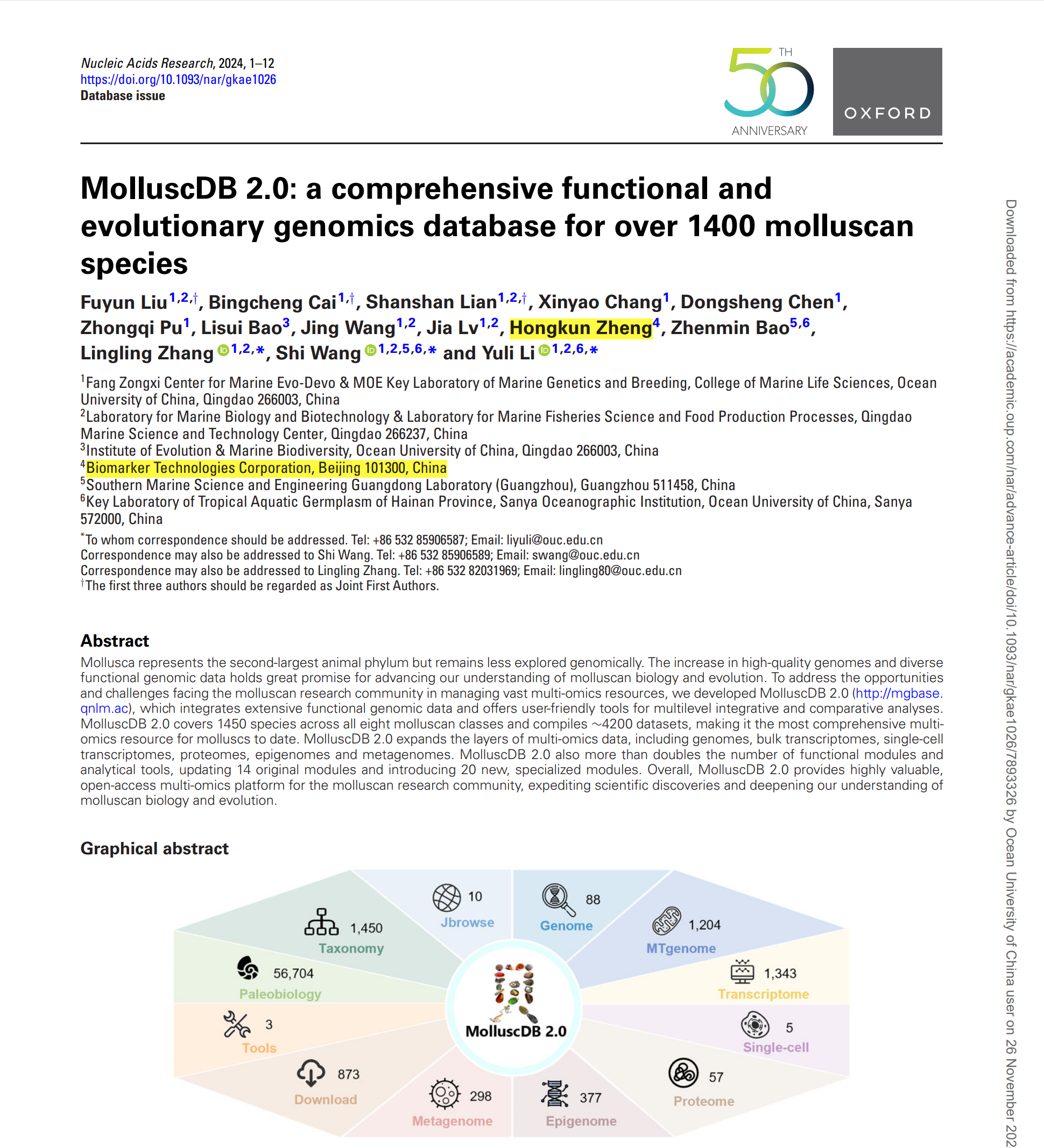 MolluscDB 2.0為軟體動物研究領域提供一個物種覆蓋度較廣、組學資源較豐富、分析功能較全面的開放獲取數(shù)據(jù)庫平臺,實現(xiàn)對復雜海量多組學資源的系統(tǒng)整合和深度分析,助力更全面地揭示軟體動物的生物學奧秘和演化歷程,推動認知海洋生物獨特生命過程演變規(guī)律,也將為貝類重要基因資源發(fā)掘、遺傳育種工作等提供有力支撐。