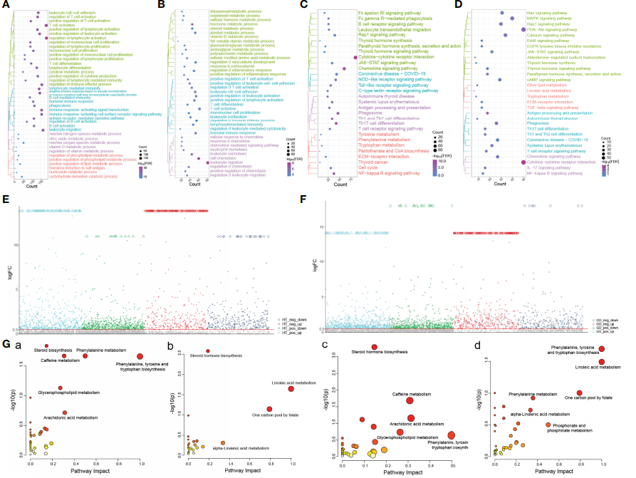 圖2?HT和GD中失調(diào)的基因表達與異常的免疫級聯(lián)和代謝信號傳導有關
