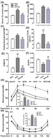 在ND適應(yīng)1周后,將小鼠隨機分為2組:ND組(n = 30)和HFD組(n = 30),治療8周。