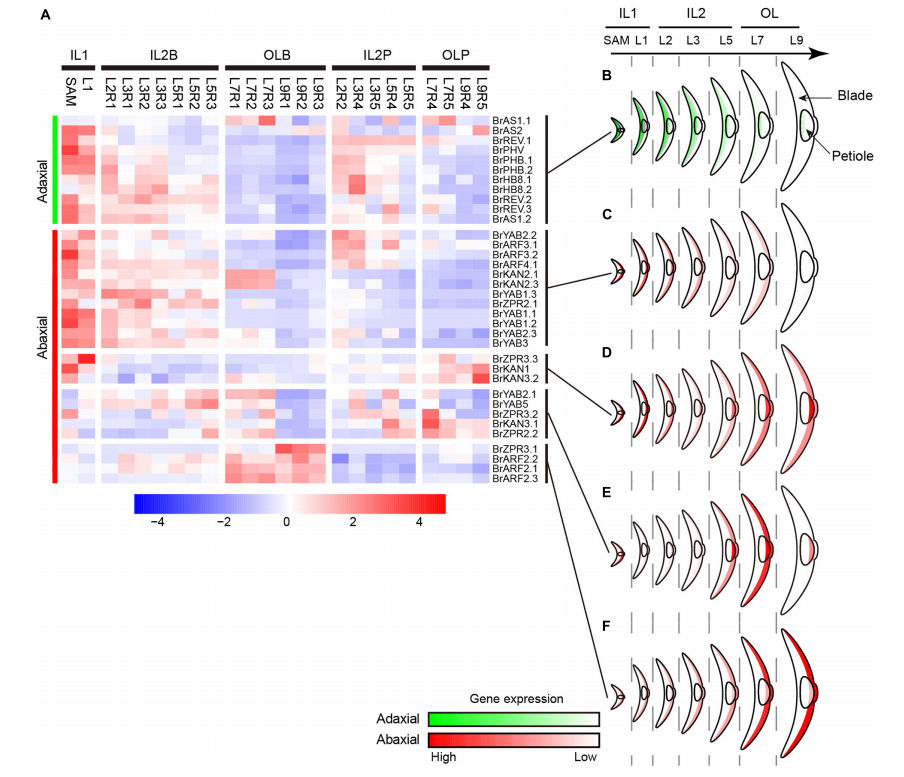 大白菜是一種重要的結(jié)葉蔬菜作物。在抽穗期,葉片內(nèi)外表現(xiàn)出明顯的形態(tài)分化。然而,這種復(fù)雜的葉片形態(tài)分化的遺傳控制仍不清楚。