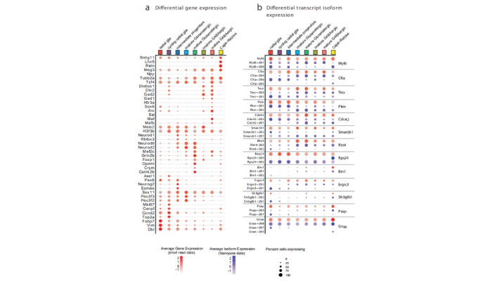 10×單細(xì)胞全長轉(zhuǎn)錄組測序利用ONT長讀長實時測序技術(shù)結(jié)合10X技術(shù)可以直接讀取反轉(zhuǎn)錄的全長cDNA,并進(jìn)行快速分析。這樣能夠有效的獲取高質(zhì)量的單個RNA分子的全部序列,準(zhǔn)確辨別二代測序無法識別的同源異構(gòu)體 (isoform)、同源基因、超家族基因或等位基因表達(dá)的轉(zhuǎn)錄本。