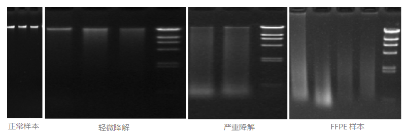 不同類型樣本選擇合適的提取試劑盒,不同質(zhì)量DNA樣本選擇合適的提高有效文庫比例的建庫試劑盒。