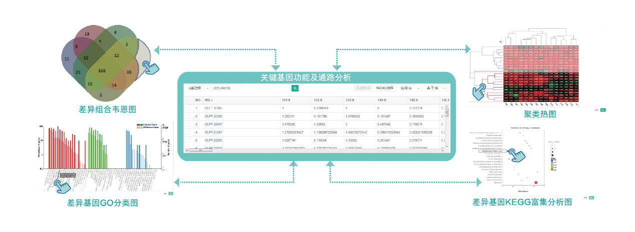 可視化操作、交互性基因深度挖掘,關(guān)注哪里“點(diǎn)”哪里。【基本操作】基因功能、基因名稱、序列和ID的檢索、關(guān)鍵基因功能及通路分析、WGCNA分析等基因功能挖掘?!緜€性化挖掘】個性化差異分析方案,個性化圖表優(yōu)化、共表達(dá)趨勢分析、基因結(jié)構(gòu)分析。