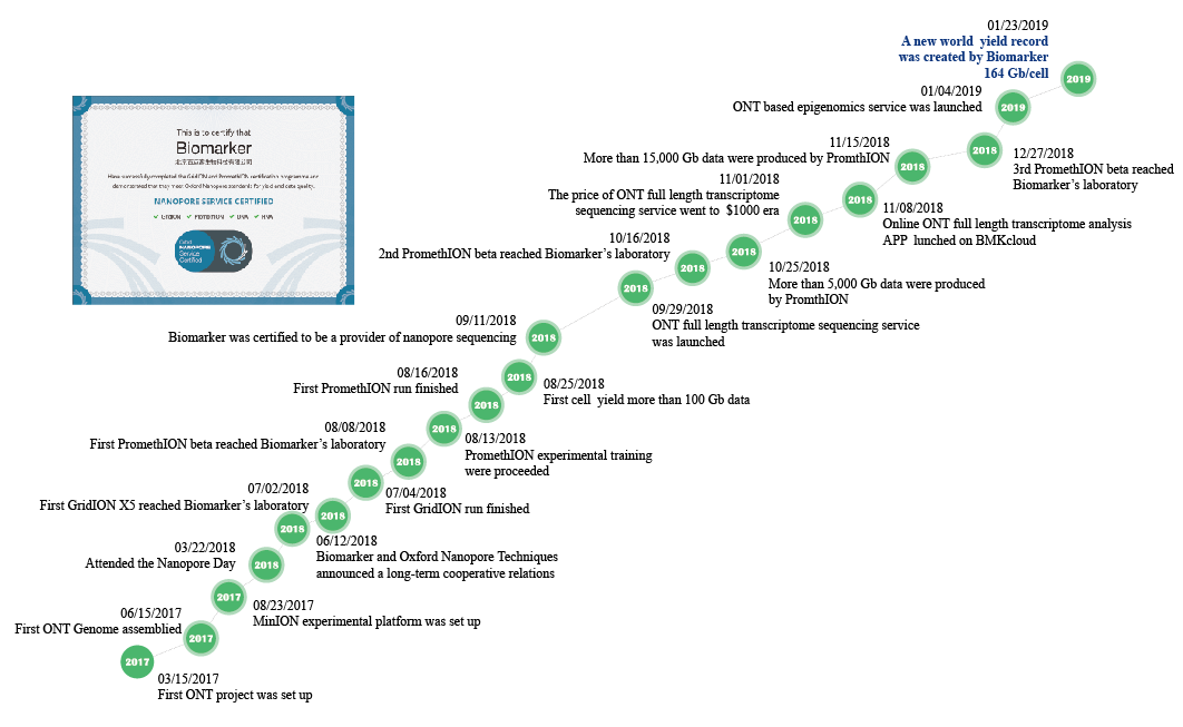 ONT sequencing is a single molecule real-time electrical signal sequencing technology based on nanopores, the sequencing principle of each platform is the same. Double-stranded DNA/RNA will bind to nanoporous protein embedded in the biofilm and unwinding under the lead of motor protein, under the action of voltage difference from both sides of the biofilm, DNA/RNA strands pass through the nanopore channel protein at a certain rate. Due to the differences of the chemical properties of the different bases on the DNA/RNA strand, when a single base or DNA molecule passes through the nanopore channel, it will cause the change of different electrical signals. By detecting and corresponding to these signals, the corresponding base types can be calculated and the real-time detection of the sequence can be completed.